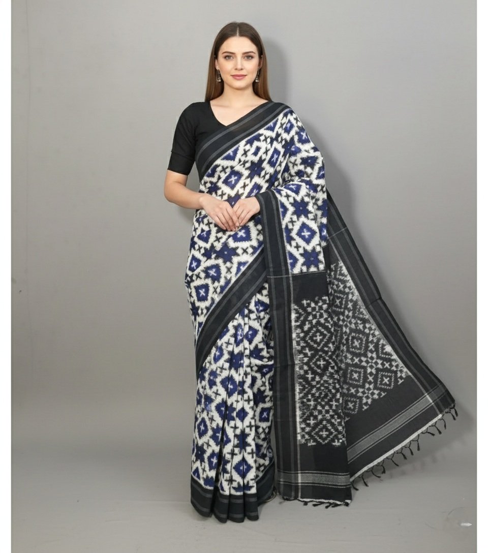 Authentic Double Ikat Teliya Saree with Blouse – 6.2 Meters of Timeless Elegance