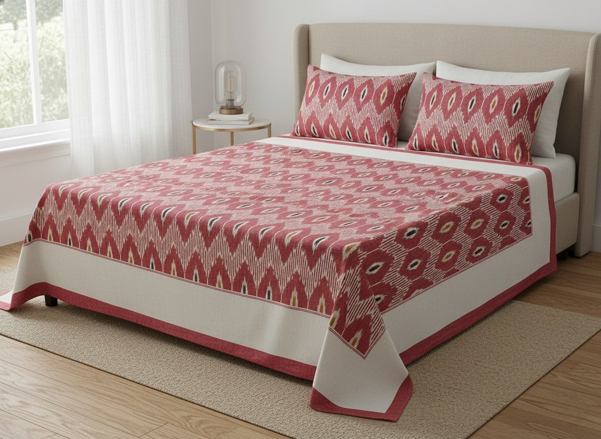 Authentic Pochampally Ikat Bedsheet – King Size 9×7 ft with 2 Pillow Covers | Handwoven