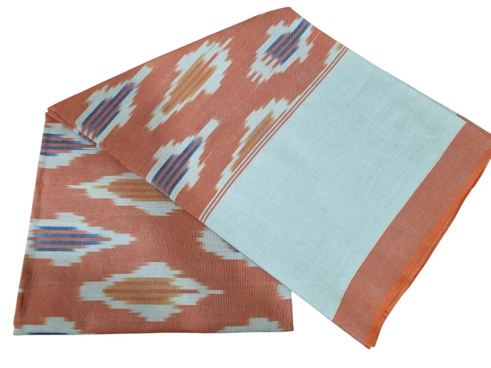 IKAT HANDLOOM COTTON DUPPATA WITH BLOCK PRINT 2.5 MEERS Copy