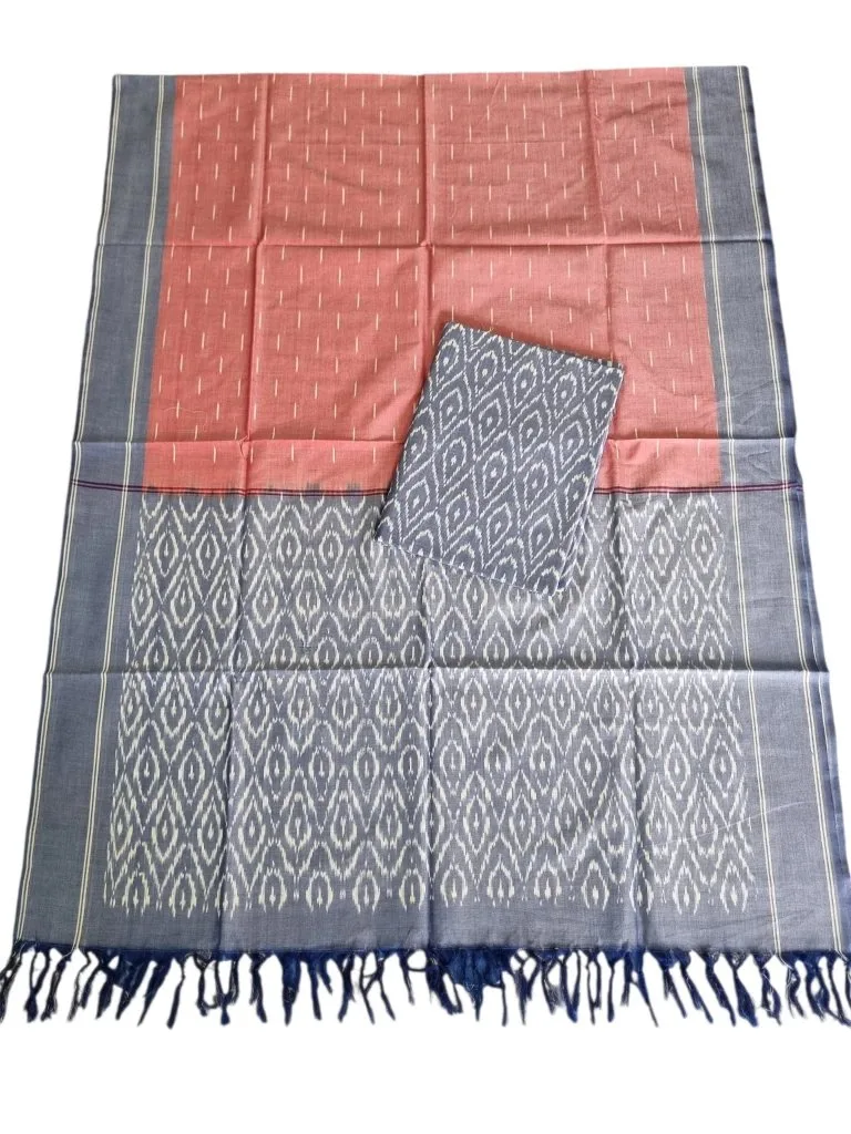 Experience the elegance of traditional craftsmanship with our Handloom Mercerised Cotton Dress Set. This beautifully woven 3-piece set includes: