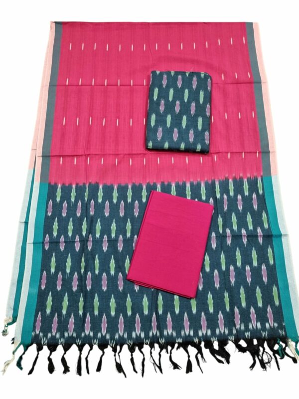 Woven Masterpiece: Pochampally Ikat Handloom Cotton Fabric – 2/40s Count Description: Indulge in the timeless beauty of handcrafted luxury with