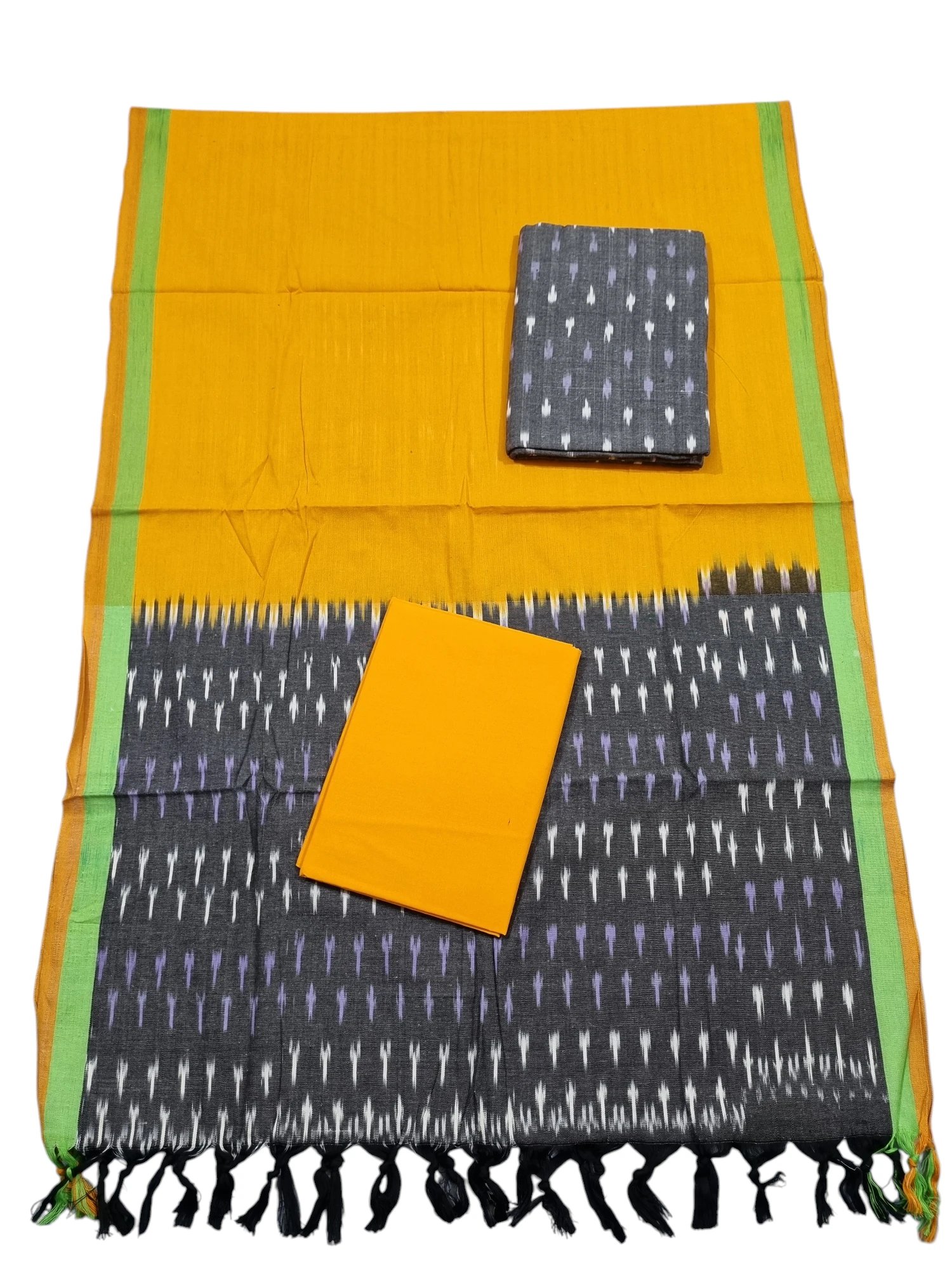 1. Authentic Pochampally Design: Our cotton suits feature the intricate Pochampally design, a traditional art form known for its geometric patterns and vibrant colors. Each suit is a testament to the skilled craftsmanship of artisans who have mastered this art over generations.