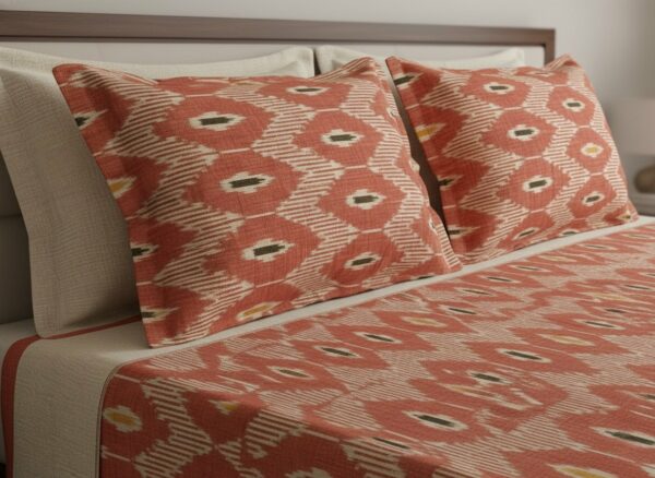 Authentic Pochampally Ikat Bedsheet – King Size 9×7 ft with 2 Pillow Covers | Handwoven