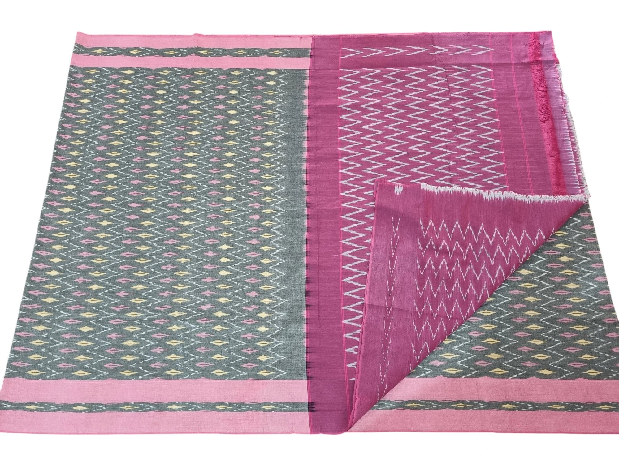 Featuring the timeless Ikat weaving technique, every pattern is a work of art, reflecting the skill of master artisans. The saree drapes beautifully, making it ideal for festive occasions, office wear, or casual gatherings.